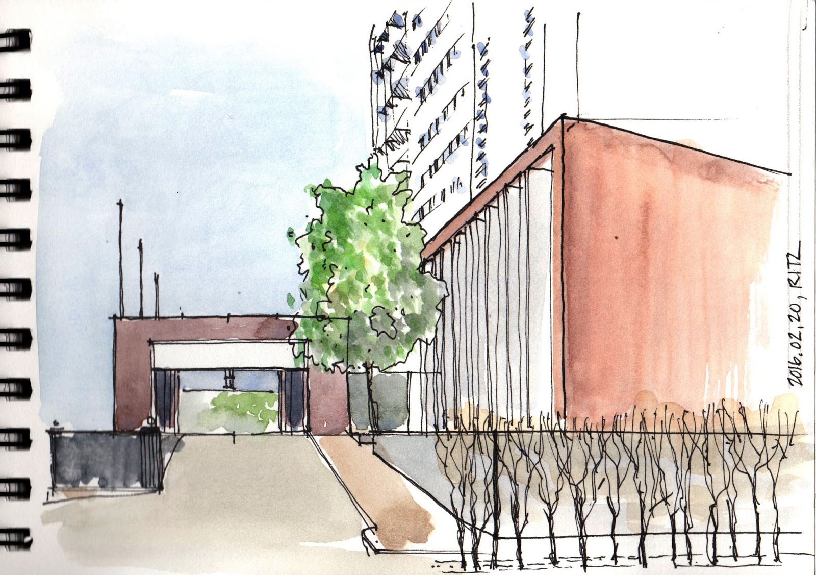 Estava vento e frio e não tive persistência para um desenho demorado no terraço.